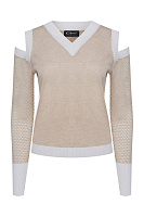 Добавьте яркие акценты в ваш гардероб с этим стильным джемпером с люрексом. Его легкий материал не только приятно облегает фигуру, но и создает игривый блеск благодаря люрексу. Эффектные вырезы на плечах добавляют нотку современности и сексуальности, а V-образный вырез подчеркивает изящество линии шеи. Этот джемпер отлично сочетается с юбками и брюками, создавая как повседневные, так и вечерние образы. Идеален для тех, кто ценит стиль и комфорт в каждой детал