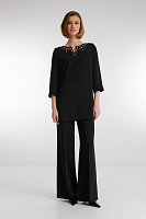 Блузка из струящейся поливискозы. Удлиненная модель с V-образным вырезом прекрасно вытягивает силуэт, боковые разрезы обеспечивают комфорт в движении. Небольшие подплечники делают линию плеча более графичной. Блузку можно сочетать с брюками из той же линейки для создания готового комплекта.