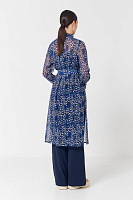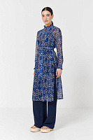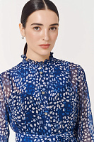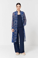 Легкая удлиненная блузка из струящейся вискозы с застежками на пуговицах и поясом. Оборки по вороту и на рукавах придадут нотку романтики, а боковые разрезы не будут стеснять ваших движений. Абстрактный принт будет отлично сочетаться с любыми моно-брюками.