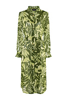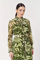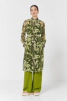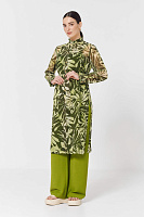 Легкая удлиненная блузка из струящейся вискозы с застежками на пуговицах и поясом. Оборки по вороту и на рукавах придадут нотку романтики, а боковые разрезы не будут стеснять ваших движений. Ростительный принт будет отлично сочетаться с любыми моно-брюками.