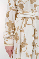 Эта шикарная блуза с цветочным узором — идеальный выбор для стильных образов на любой случай. Золотистые акценты придают ей особую изысканность, а свободный крой и пояс подчеркивают фигурные линии. Благодаря длинным рукавам и классическому колпаку, эта блуза отлично подойдет как для офисного стиля, так и для вечерних мероприятий. Создайте уникальный образ, сочетая её с юбками, брюками или шортами!