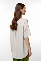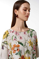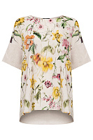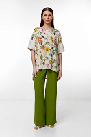 Блузка свободного кроя с цветочным принтом, будет отлично сочетаться с любыми моно-брюками.