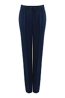 Брюки классического прямого кроя выполнены из мягкого костюмного материала из поливискозы. Простроченные стрелки визуально вытягивают силуэт и отвечают за элегантный внешний вид изделия. Удобный пояс с резинкой сзади украшен декоративной строчкой и атласными вставками. Носите брюки с пиджаком из той же линейки для создания готового образа.