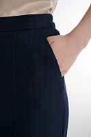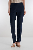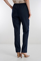 Брюки в полоску отличаются мягким блеском ткани благодаря люрексу. Зауженный крой и вертикальный принт визуально вытягивают силуэт, а эластичная вставка на поясе обеспечивает комфорт в течение дня. Модель идеально сочетается с жакетом из той же линии, создавая гармоничный образ для офиса и вечерних выходов.