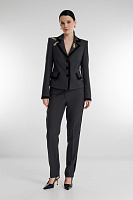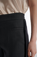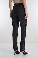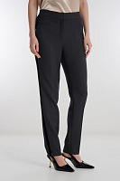 Классические зауженные брюки приобретают современное звучание благодаря бархатным лампасам, которые визуально вытягивают силуэт и добавляют образу выразительности. Модель сохраняет лаконичность и универсальность — изделие легко комбинировать как с базовыми, так и с акцентными верхами.