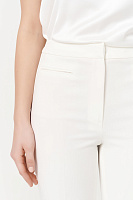 Брюки на средней посадке с небольшим клешем и стрелками будут отлично смотреться с любым жакетом или рубашкой. Благодаря эластану брюк хорошо тянутся и ну будут сковывать движения, при этом подчеркнет достоинства фигуры.