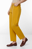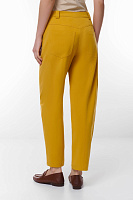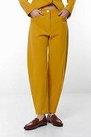 Укороченные брюки в стиле багги выполнены в мягком кремовом оттенке. Золотистая фурнитура на шлевках делает главный акцент на талии. Стильный фасон брюк идеально подойдет для создания повседневного образа.
