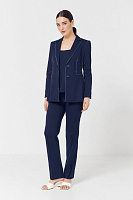 Зауженные брюки из фактурной ткани со стрелками. Образ можно дополнить жакетом из той же линейки.
