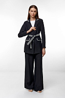 Идеальные брюки для особенных поводов и стильных повседневных сетов. Лампасы не только визуально вытягивают силуэт, но и становятся акцентной деталью, делающей дизайн изделия менее строгим и формальным. Пояс с резинкой обеспечивает комфортную посадку на талии. К брюкам получится подобрать гармоничный жакет из коллекции Caterina Leman.