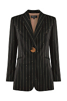 Пиджак классического кроя заиграл по-новому благодаря эффектному сочетанию классического принта и россыпи мелких пайеток. Вертикальная полоска, выбранная дизайнерами бренда, визуально вытягивает силуэт. Шалевый воротник добавляет баланс, делая черты изделия менее графичными. Комбинируйте пиджак с брюками из той же линейки для создания ослепительного образа.