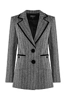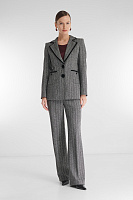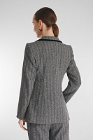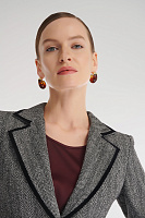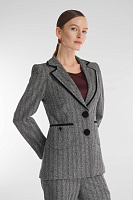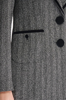 Классический пиджак приобретает современное звучание благодаря бархатной окантовке. Фактурный костюмный материал с принтом «елочка» и приталенный крой формируют безупречный силуэт, оставаясь при этом универсальным решением для разных случаев. Подкладка из вискозы обеспечивает комфорт в носке. Пиджак можно стилизовать в комплекте с брюками или юбкой из той же линейки.