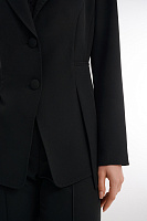 Классический однобортный пиджак приобретает современное звучание благодаря аккуратной контрастной строчке, добавляющей графичности и лёгкого акцента. Костюмное полотно на основе вискозы уверенно держит форму, а подплечники обеспечивают чёткую и стабильную линию плеч. Элегантная модель, которая легко становится основой продуманного, современного образа.