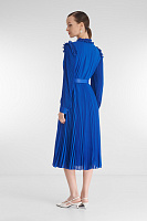 Платье — словно маленькая поэма о женственности, которая читается взглядом. Изысканная плиссировка мягко струится по фигуре, создавая кокетливую динамику при каждом движении. Декоративные рюши и бархатные завязки на воротнике придают модели игривую романтичность и выразительность. Носите платье с ремнем, чтобы подчеркнуть талию, или оставьте струящимся — в обоих вариантах оно сохранит изящество и притягательность.