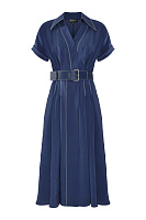 Платье с контрастной строчкой и поясом