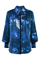 Рубашка выполнена из высококачественной поливискозы. Гладкая ткань обладает легким блеском и красиво струится во время носки. Эффектный дизайн с плиссировкой на рукавах и стильным цветочным принтом делает рубашку самостоятельным предметом гардероба, не требующим сложных стилистических комбинаций.