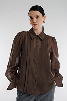 Полупрозрачная рубашка из невесомого материала на основе вискозы добавит образу легкости и свежести. Аккуратные складки спереди и контрастная строчка на воротнике привлекают внимание к деталям, а свободный крой обеспечивает комфорт и непринужденный силуэт. Модель универсальна: она одинаково эффектно смотрится с классическими брюками, юбкой или джинсами.