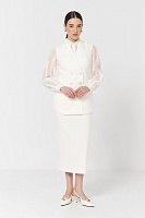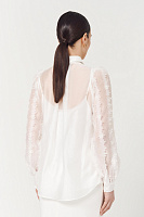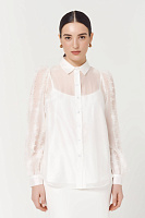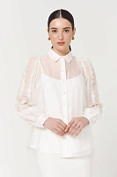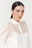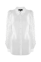 Полупрозрачная рубашка из невесомого материала на основе вискозы добавит образу легкости и свежести. Украшена нежной апликацией в виде цветов на рукавах.