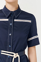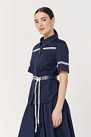 Легкая рубашка в морском стиле с коротким рукавом, будет элегантно сочетаться с юбкой из той же линейки.