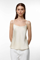 Для создания топа был выбран гладкий струящийся материал из смесовой вискозы. Тонкие регулируемые бретели обеспечивают индивидуальную посадку, а минималистичный дизайн позволяет стилизовать изделие в самые разные образы.