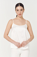 Минималистичный топ из гладкого смесового материала станет основой для создания различных образов: от повседневных до деловых и вечерних. Тонкие регулируемые бретели позволят подобрать индивидуальную посадку.