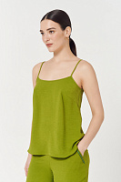 Минималистичный топ на бретелях станет универсальной основой для создания разных образов — от повседневных до вечерних. Мягкий струящийся материал красиво драпируется и обеспечивает комфорт.