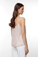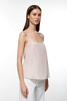 Минималистичный топ на бретелях станет универсальной основой для создания разных образов — от повседневных до вечерних. Мягкий струящийся материал красиво драпируется и обеспечивает комфорт. Благодаря двойному слою ткани спереди модель не просвечивает и сохраняет аккуратный силуэт.