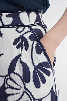 Стильная юбка-карандаш создана для ярких летних образов. Хлопковая ткань дышит, обеспечивая комфорт даже в жаркую погоду. Две шлицы спереди и сзади не ограничивают свободу движений, а функциональные карманы делают модель практичной. Застежка на скрытую молнию сзади гарантирует аккуратную посадку, а пояс с эластичной вставкой адаптируется к фигуре. Карманы и пояс подчеркнуты декоративной тесьмой в тон, добавляя выразительности. Юбка создает элегантный и современный образ как в комплекте с укороченным жакетом из той же линейки, так и в сочетании с другими элементами гардероба.