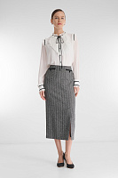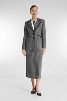 Юбка-карандаш — ключевой элемент в женском гардеробе, который объединяет комфорт и элегантность. Благодаря классическому крою и практичной длине ее можно сочетать с разными вещами — от блузок до объемных свитеров. Бархатная отделка на карманах добавляет аристократичной роскоши. В пару к юбке можно подобрать пиджак из той же линейки.