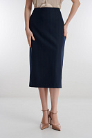 Юбка-карандаш в полоску с люрексом объединяет сдержанную классику и утонченность вечернего стиля. Слегка зауженный крой и длина мидакси визуально вытягивают силуэт и делают образ более изящным. Благодаря плотной костюмной ткани модель сохраняет форму и идеально садится по фигуре. В сочетании с жакетом или блузкой из той же линии юбка образует безупречный комплект для офиса и особых случаев.