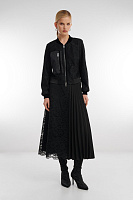 Юбка с гипюровыми вставками добавляет образу утончённый акцент. Классическая плиссировка формирует лёгкий, динамичный силуэт, а подкладка из вискозы создаёт выразительный контраст прозрачных и плотных фактур. Эластичный пояс обеспечивает комфортную посадку и мягко подчёркивает линию талии.