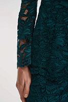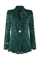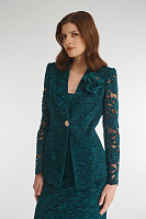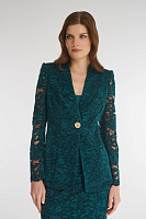 Жакет из нежного гипюра с флористичным мотивом. Крой акцентирует внимание на талии. V-образный вырез визуально вытягивает силуэт. Полупрозрачные рукава подчеркивают легкость. В комплект к жакету можно подобрать юбку из той же линейки.
