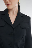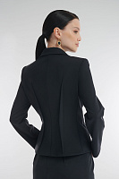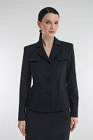 Жакет отличается элегантным дизайном и кроем, который выгодно подчеркивает фигуру. Вытачки усиливают эффект, вытягивая силуэт и создавая еще больший визуальный акцент на талии. Лаконичный внешний вид делает модель универсальной: она одинаково хорошо смотрится в повседневных образах с джинсами и в вечерних сетах с нарядными юбками. Жакет дополнен подплечниками.