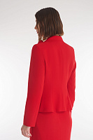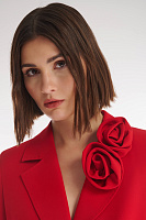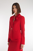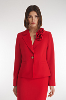 Наполните свои образы женственностью с элегантным приталенным жакетом. Модель застегивается на контрастную пуговицу в форме розы. Объемный цветочный декор украшает классический английский воротник. Модель выполнена из плотного костюмного материала на основе вискозы, подплечники помогают поддерживать форму изделия. В комплект к жакету можно подобрать юбку в тон из той же линейки.