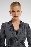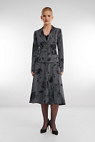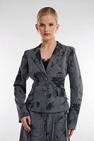 Стильный женский жакет привлекает внимание сочетанием элегантного кроя и выразительного цветочного принта. Лаконичная линия силуэта подчёркивает утончённость модели, а насыщенный рисунок добавляет образу индивидуальности. В комплекте с юбкой из той же линии жакет формирует эффектный и безупречно собранный ансамбль, подходящий как для деловых будней, так и для особых случаев.