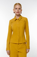 Укороченный жакет с отложным воротником и перламутровыми пуговицами будет отлично дополнять повседневный образ. Вышивка с перфорацией делает акцент и придает изюминку образу.