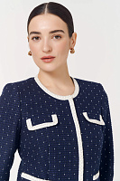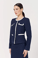 Приталенный жакет поможет создать актуальный и стильный образ. Сочетайте изделие с юбкой из той же линейки для создания готового комплекта.