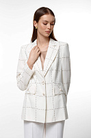 Изящный пиджак с принтом в виде строчки – идеальный выбор для стильных женщин, ценящих комфорт и элегантность. Изготовленный из высококачественного текстиля, этот пиджак сочетает в себе классический крой и современный дизайн. Отлично подходит как для офисного стиля, так и для повседневного выхода, этот пиджак станет универсальным элементом вашего гардероба.