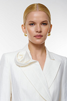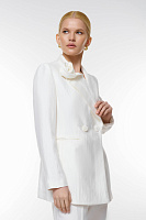 Пиджак с объемным декором — элегантное решение для современного гардероба. Модная двойная застежка на пуговицы и оригинальный объемный элемент на воротнике делают эту модель изюминкой любых нарядов. Пиджак идеально подходит как для деловых встреч, так и для вечерних выходов.
